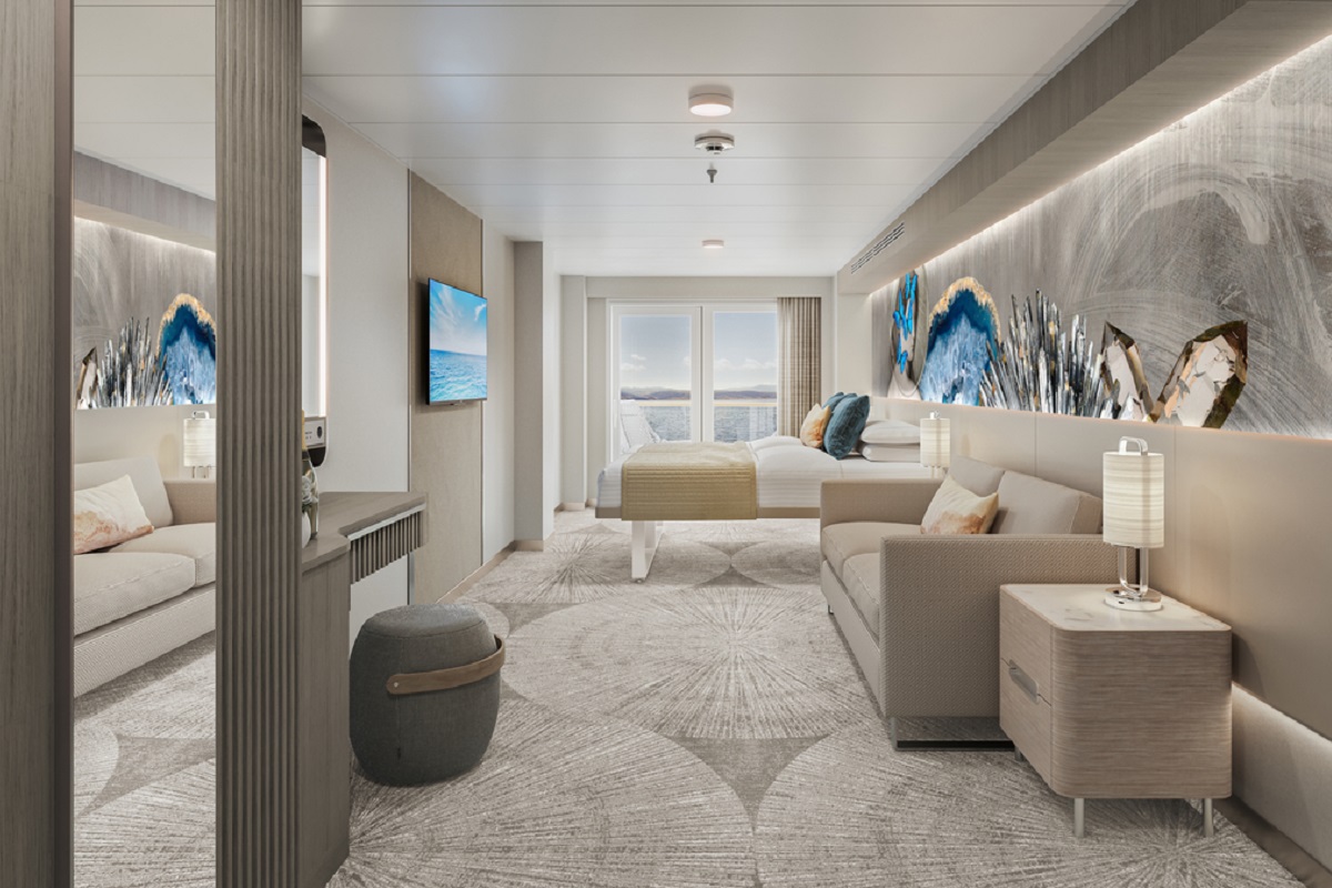 这些宽敞的豪华阳台房位于游轮的后部,最多可以入住4位游客。它们包括两张可合并为大床的单人床、一张双人沙发床,和一个私人海景阳台。部分房间可以内部联通隔壁的房间,以满足更多游客出游时的需求。