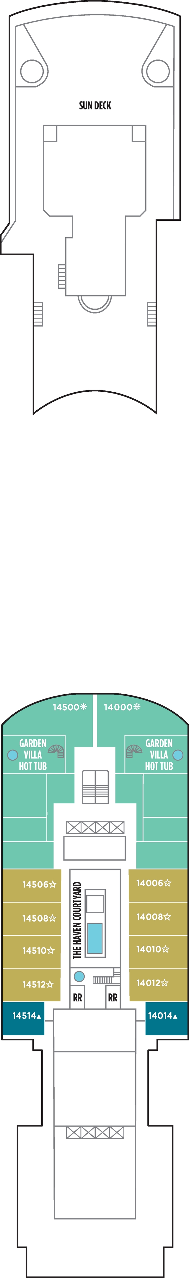 The Haven by Norwegian®位于游轮顶层,是我们配置最奢华、设备最完善的住宿区域,仅可凭私人钥匙卡进出,堪称游轮上的“世外桃源”。The Haven庭院设有私人泳池和阳光甲板,让您徜徉于宁静之中。专业的管家和礼宾人员为您提供贴心的私人服务,他们将为您安排船上和岸上的活动,让您专心致志地与亲朋好友共享欢聚时光。此外,独一无二的特色餐厅、获奖的娱乐表演以及船上的各种精彩活动距离您仅几步之遥。欢度难忘假日,体验奢华的真谛。