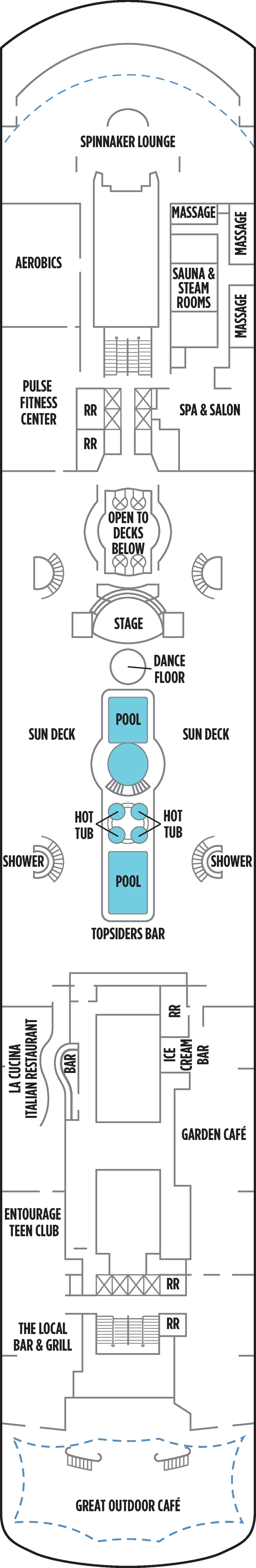 日间时段满满的互动活动等着你去自由参加。涂上防晒霜,在泳池甲板上享受日光浴。想体验一天水疗?不要犹豫啦,来一次热石按摩,尽情放松身心。无论追求刺激还是放松,每位游客都能在船上找到适合自己的去处。想带着孩子四处走走?我们为您准备了各种引人入胜的搞怪活动,让全家人都可以玩得尽兴,您可以为您的孩子免费报名参与这些与他们年龄相符的青少年计划。